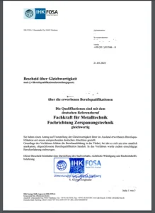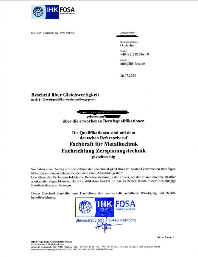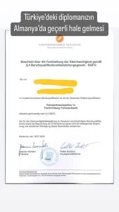 Danışmanlığını yaptığımız adaylarımızdan Almanya'dan alınan denklik bazıları sizlere paylaşım yapılmıştır. Başvuru için bize Yazın
